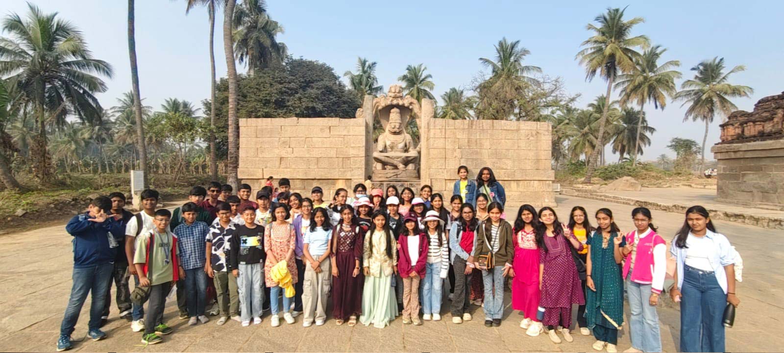 Students of Grades 7 and 8 set on a two-night, three-day educational trip to Hampi on 29th January 2026.The key attractions of the tour included visits to the Virupaksha Temple, where students learned about its religious and architectural significance, and the Vitthala Temple with its stone chariot and musical pillars. They also explored the Krishna Temple, Hazara Rama Temple, and Kadalekalu Ganesha, gaining insights into ancient craftsmanship and royal traditions. The Riverside Ruins along the Tungabhadra River offered a glimpse into Hampi’s rich past. On the final day, visits to the Lotus Mahal, Elephant Stables, and Mahanavami Dibba helped students understand the Vijayanagara Empire’s culture and administration. The trip was immensely enriching, allowing students to experience history beyond textbooks and develop a deeper appreciation for India’s cultural heritage. Knowledgeable guides brought the monuments to life with engaging stories, making the journey both educational and unforgettable.
